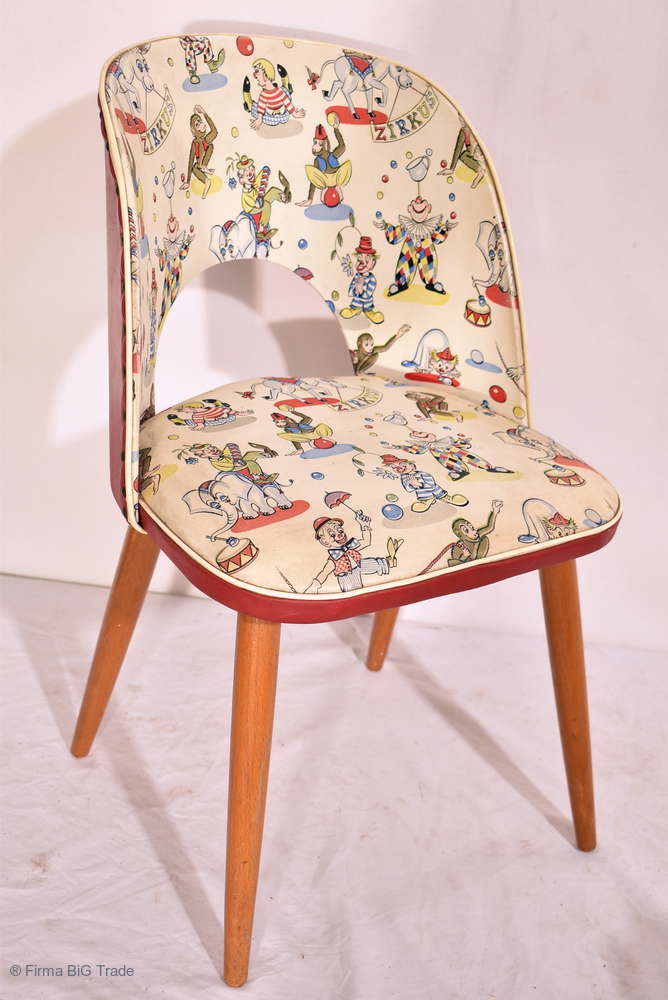 Rocabilly! Selten formschöner 50er Kinderstuhl Stuhl farbig Zirkus Bilder / Mid Cenutry German childern chair