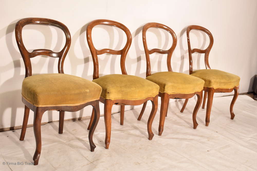 4 Elegante antike Biedermeier Stühle Salonstühle Polsterstühle Esstischstühle Holzstühle / Nr. 690 Nussbaum Massiv