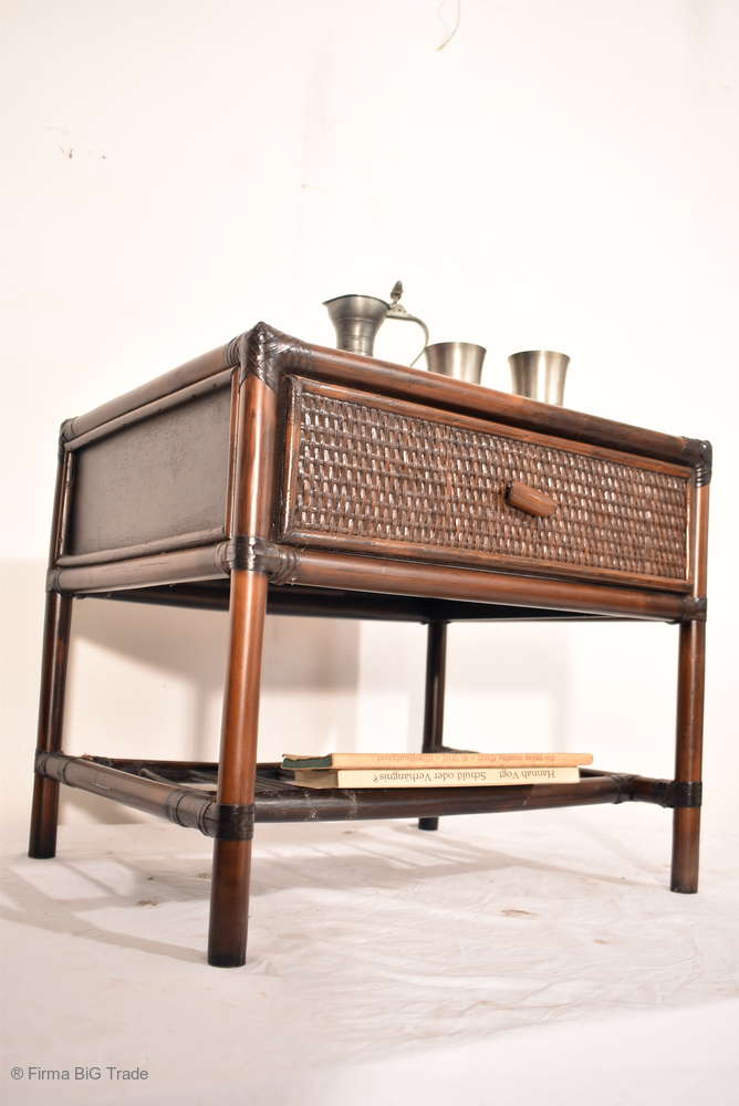 Formschöner eckiger Rattantisch Couchtisch Kaffeetisch mit Schublade Kolonial Stil / Coffee Table