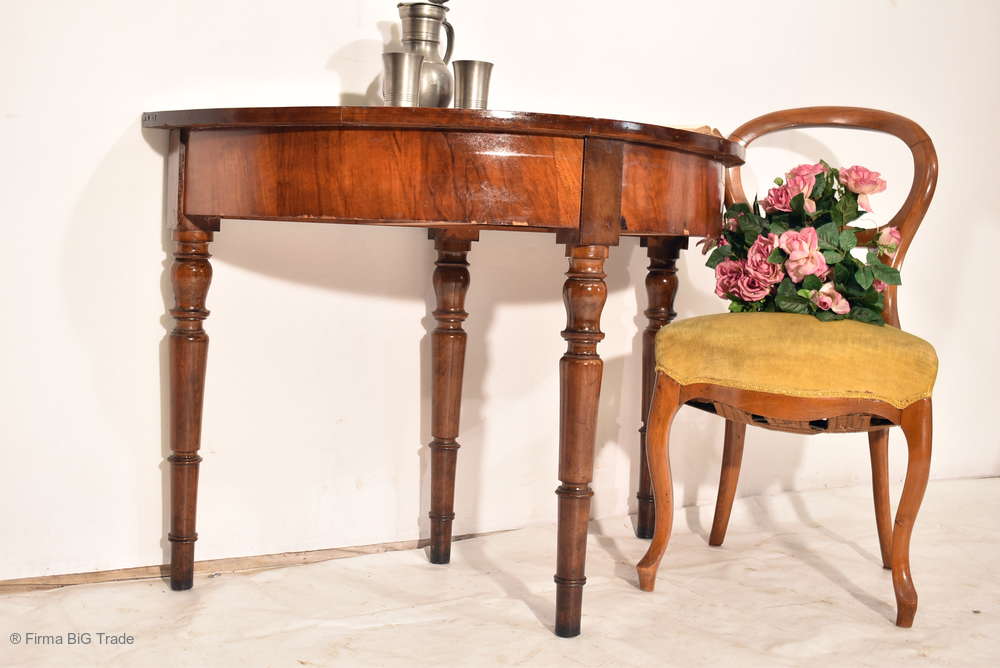 Antiker Halbrunder Gründerzeit Spieltisch Wandkonsole Flurtisch Drechselarbeiten Geheimschublade