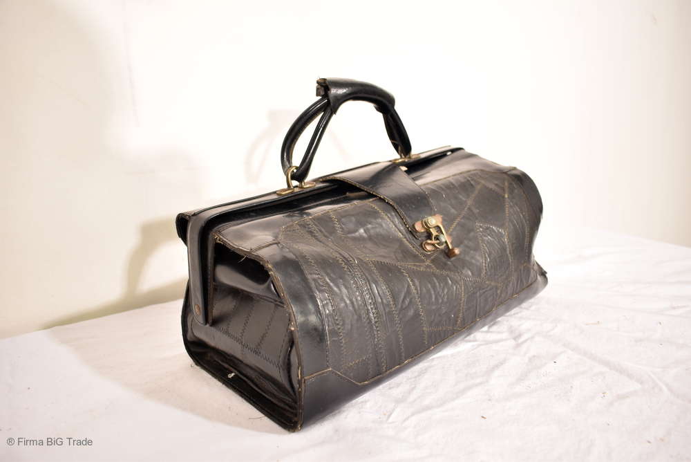 Alte schwarze Arzttasche Arztkoffer Ledertasche Lederkoffer Ledergriff u. Schloss / Nice old Doctor s bag