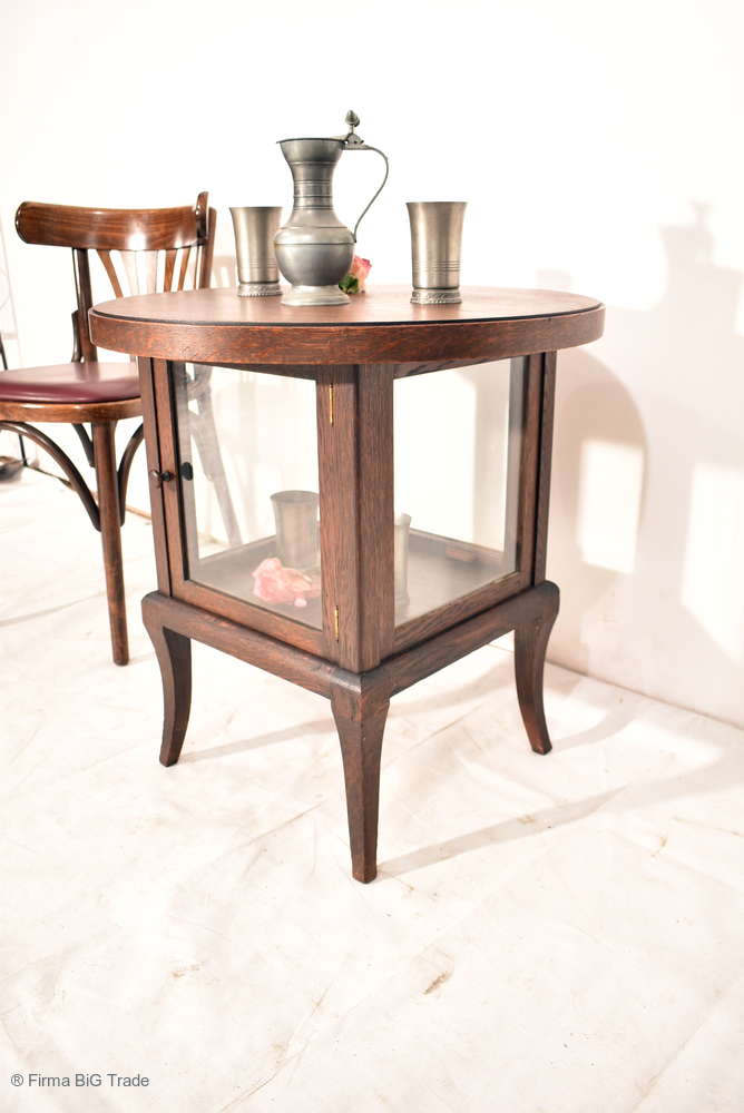 SELTEN! Antiker Jugendstil Rauchtisch mit Zigarrenvitrine Glasvitrinen / Eiche Massiv Glastür Säbelbeine
