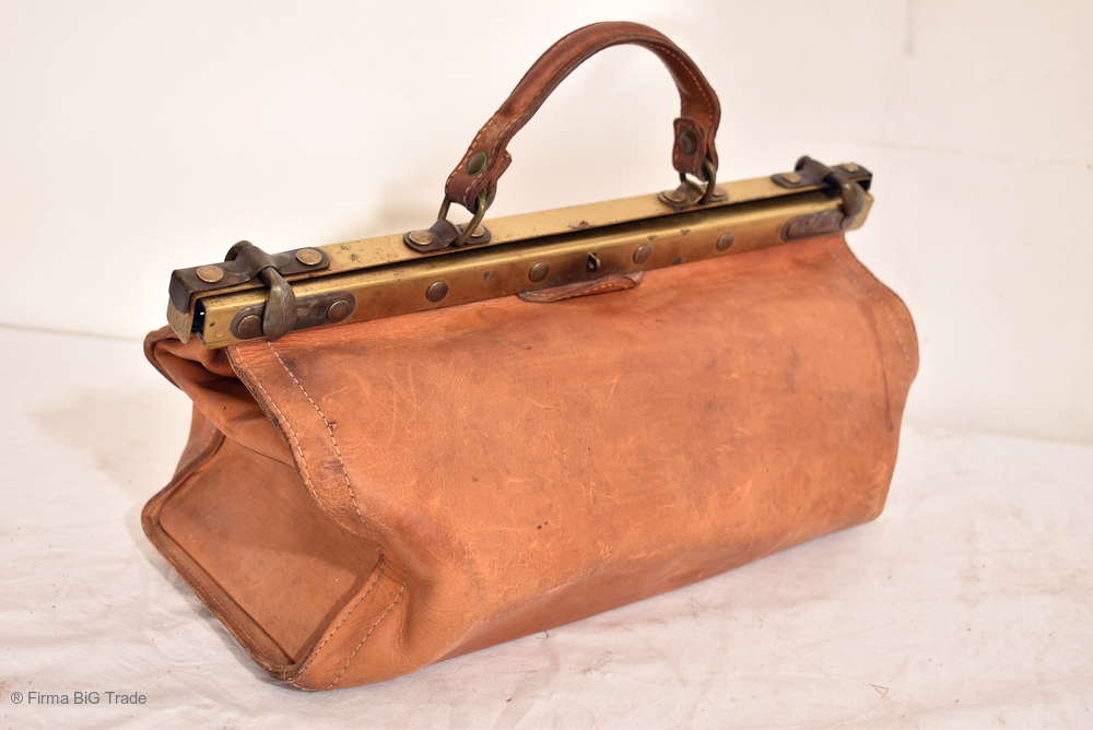 Antike Arzttasche Arztkoffer Ledertasche Lederkoffer Wildleder Klappschlösser / Nice old Doctor s bag