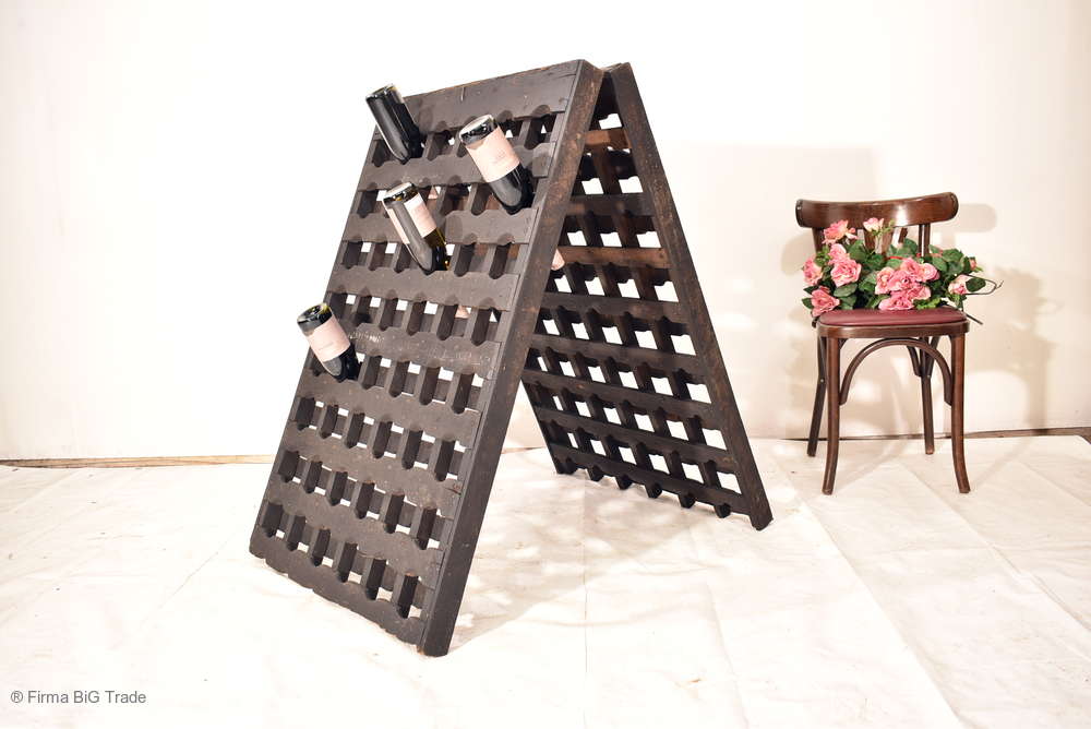 Großer alter Weinständer Weinregal für 96 Flaschen Rüttelpult Rüttelbrett Champagner Klappregal Massiv Holz