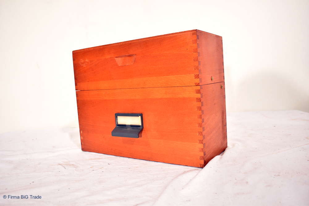 RETRO! Schöner alter Karteikasten Kartei Register Holzkarteikasten Metallgriff Schild / Nr. 1