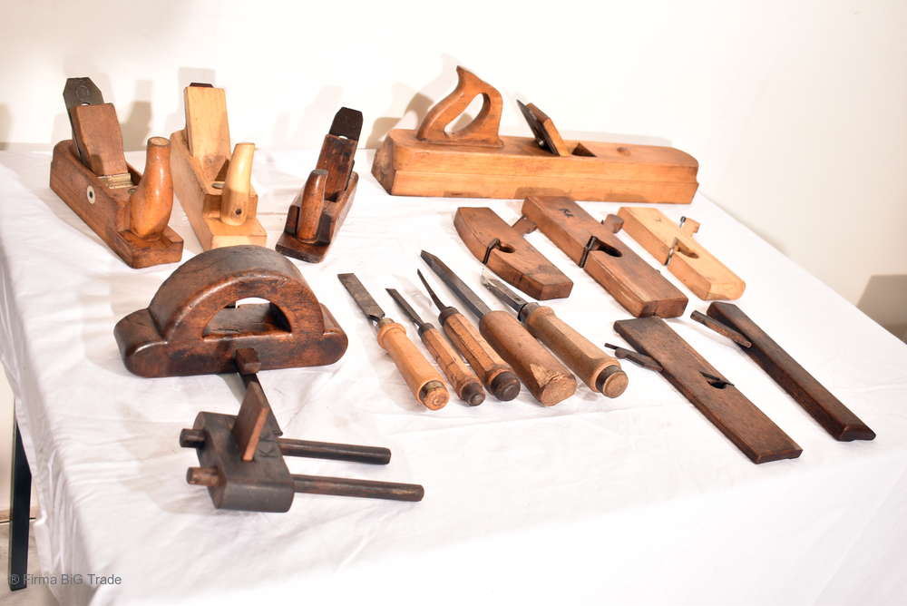 Museal Großer Posten 20 antike Zimmermann Werkzeuge Schreinerwerkzeuge Bohrer Viele Holzhobel Stechbeitel Meißel / SET 2