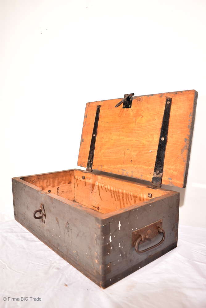 Schöne antike Holzkiste / Munitionskiste / Werkzeugkiste / Beschriftet / Massivholz / Transportkiste Eisengriffe Klappsc