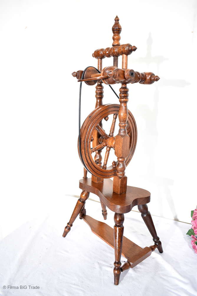 Imposantes Spinnrad Schöne Schnitzereien Drechselarbeiten Massiv Holz/ Beautiful wooden Spinning Wheel