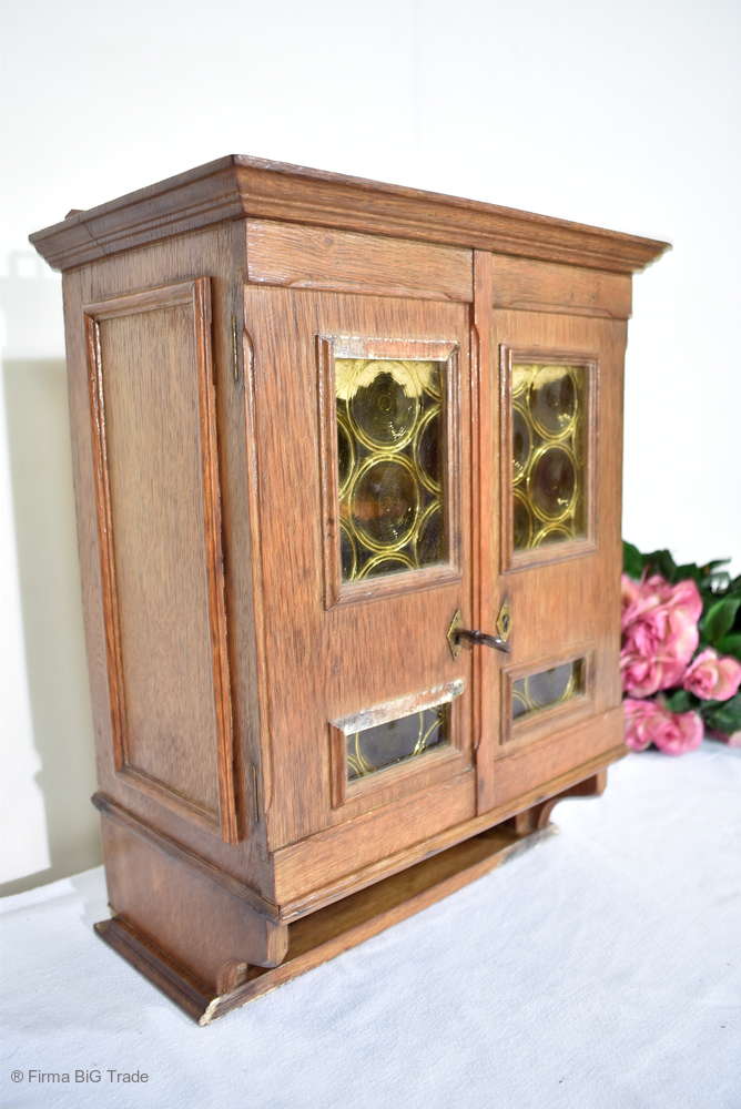 Antiker Jugendstil Apothekenschrank Hängeschrank Medizinschrank Flügeltüren Badschrank Farbglas
