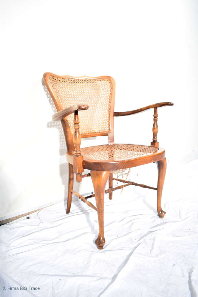 Eleganter Chippendale Armlehnstuhl Schreibtischstuhl heller Nussbaum Geflecht / Zum Aufarbeiten