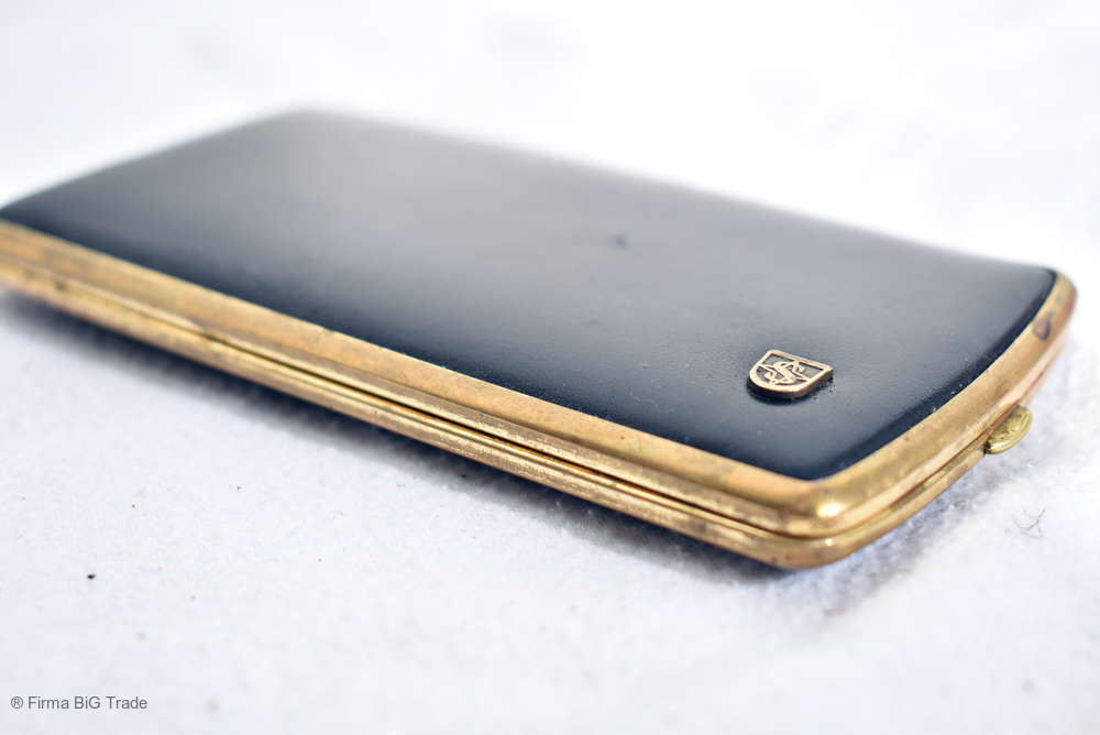 Alte lange Zigarettenetui Leder Made in W. Germany Metall-Gehäuse mit schwarzem Leder Kürzel-Plakette S