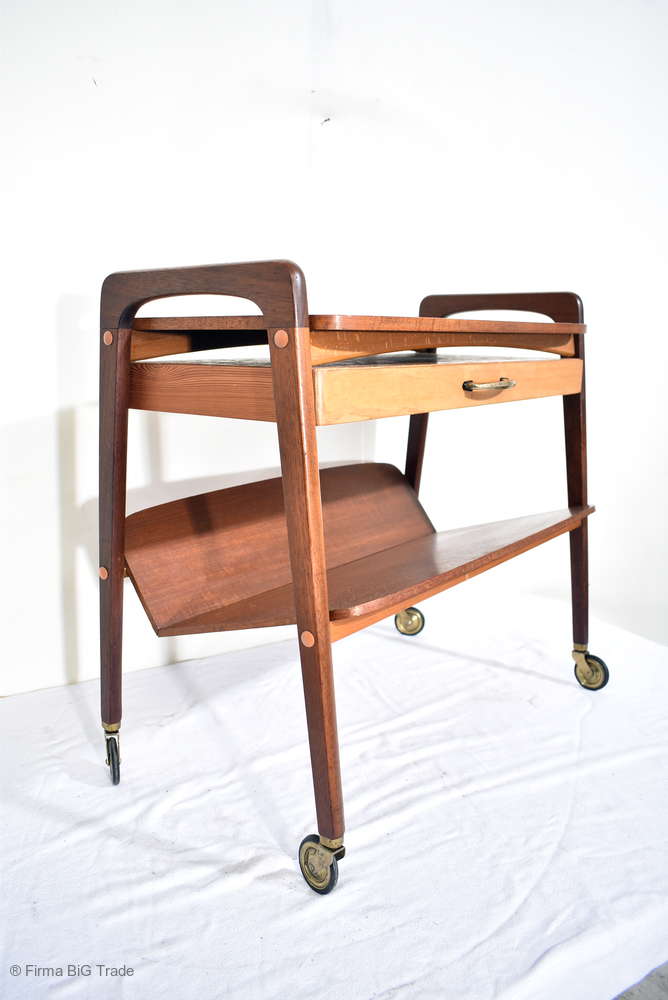 Retro! Formschöner 60er Nähtisch Arbeitstisch Damentisch Zeitungstisch Beistelltisch Rollen