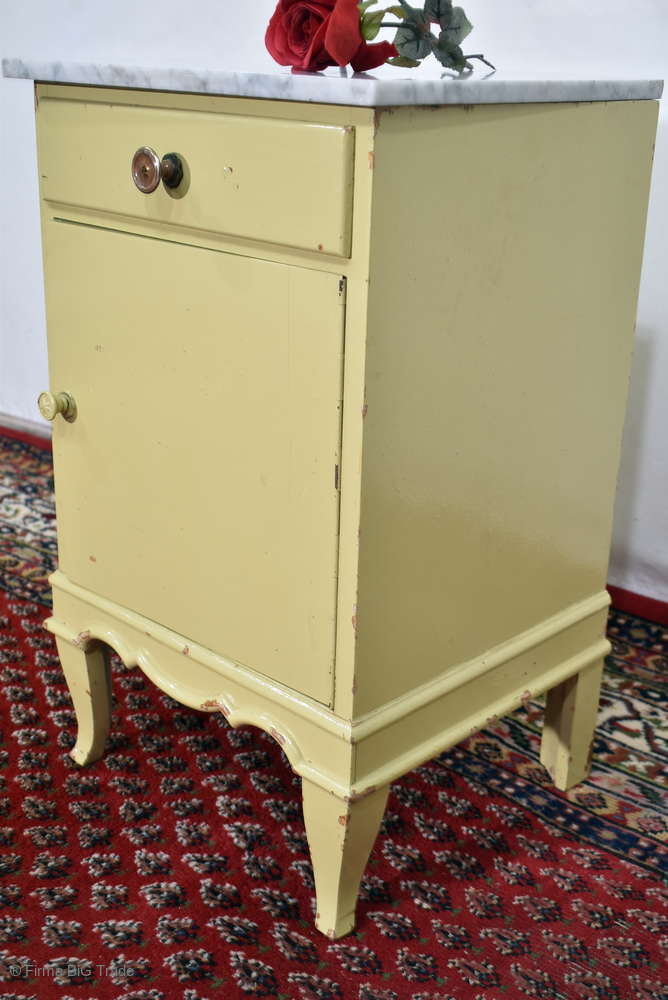 Shabby Chic! Antiker Art Déco Nachttisch Nachtschrank / Beistellschrank Marmorstein / 2 Vorhanden / Nr. 253