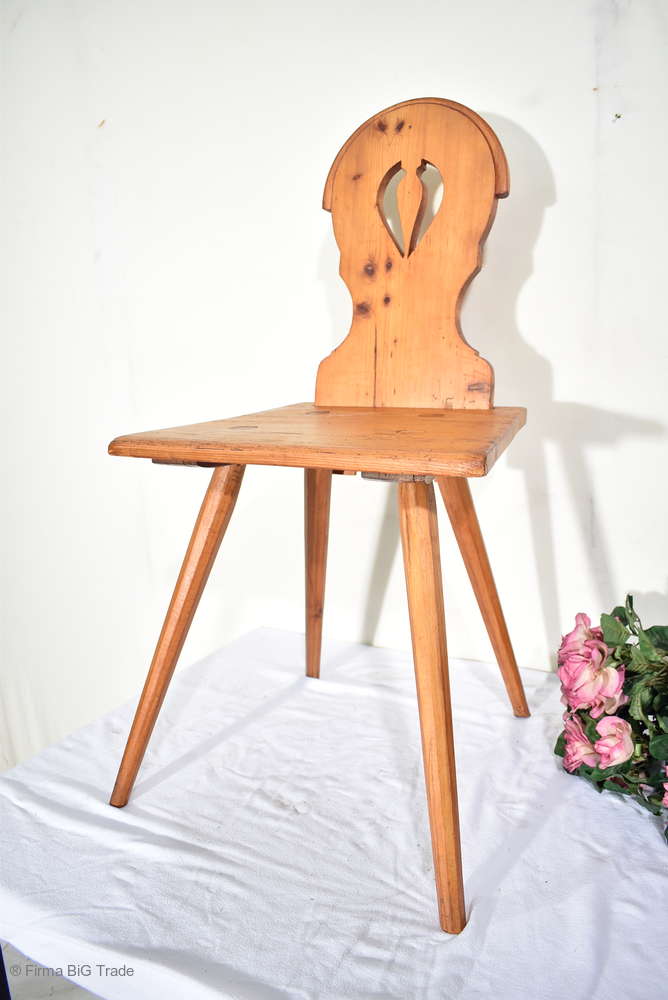 Formschöner antiker Bauernstuhl Brettstuhl Küchenstuhl Massiv Holz/ Antique German farmer chair 718