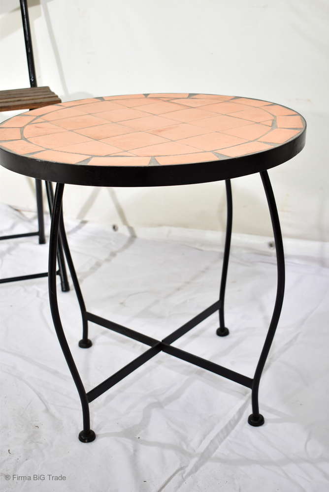 Wunderschöner runder Gartentisch Beistelltisch Kaffeetisch Kacheltisch Schmiedeeisen Terrakotta Farbe