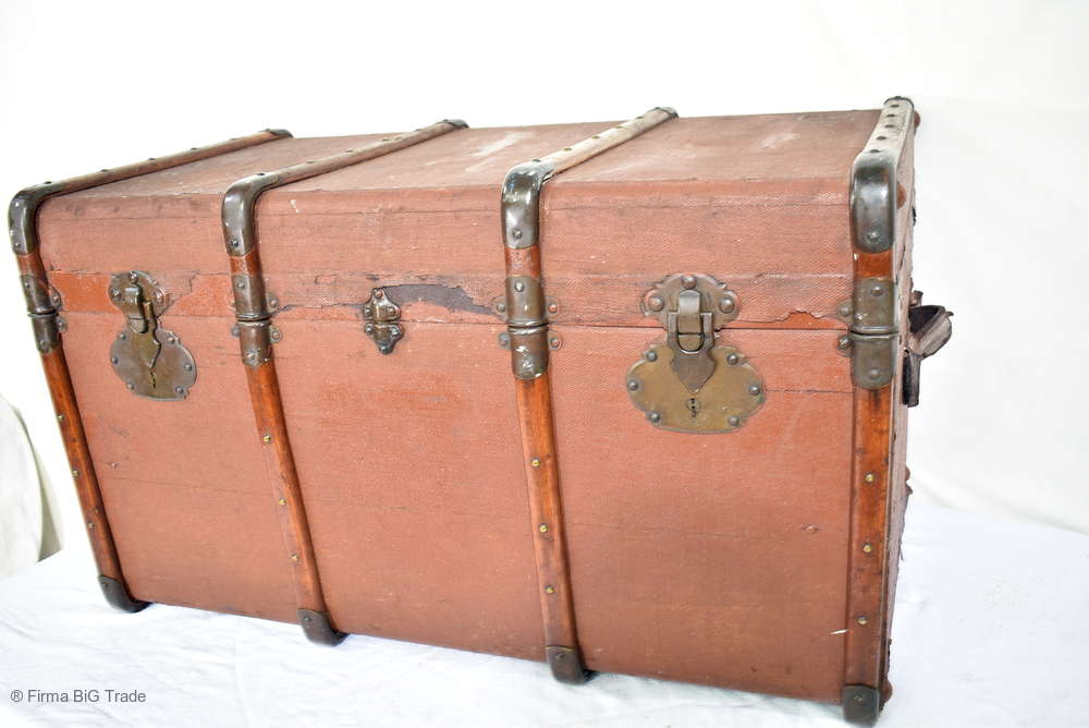Große antike Überseetruhe Überseekoffer Kutschertruhe Droschkenkoffer Holzleisten Oldtimerkoffer