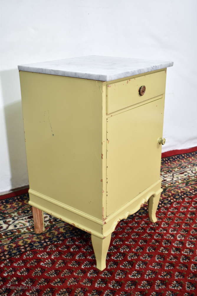 Shabby Chic! Antiker Art Déco Nachttisch Nachtschrank / Beistellschrank Marmorstein / 2 Vorhanden / Nr. 254