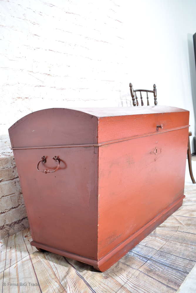 Große antike Biedermeier Truhe Runddeckeltruhe Hochzeittruhe Schlafzimmertruhe Innenkasten Weichholz massiv