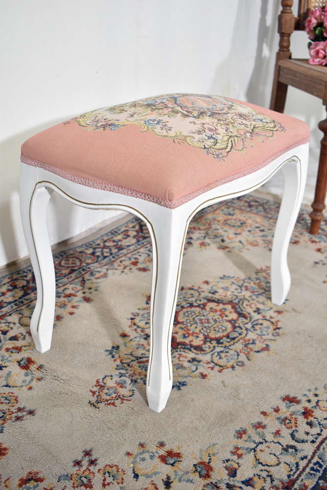 Eleganter Chippendale Polsterhocker Kaminhocker Sitzhocker Gobelinstoff Barock Muster