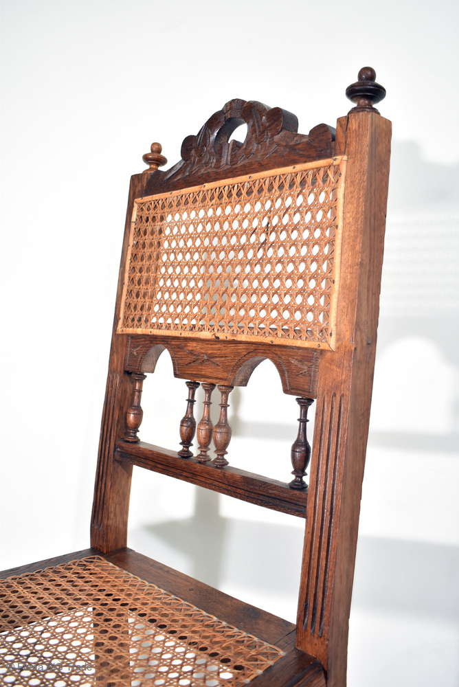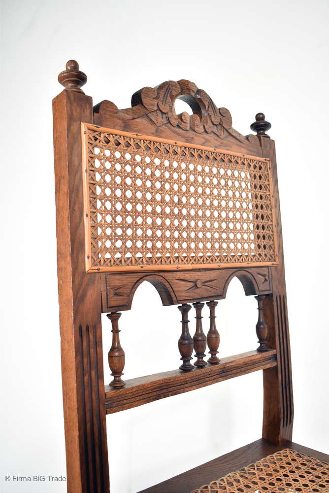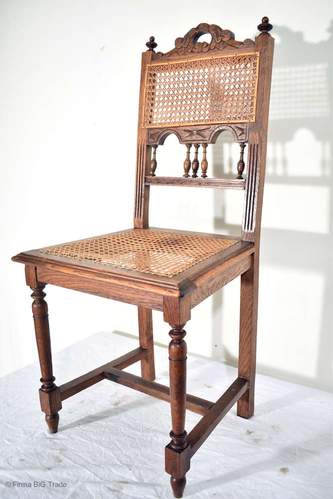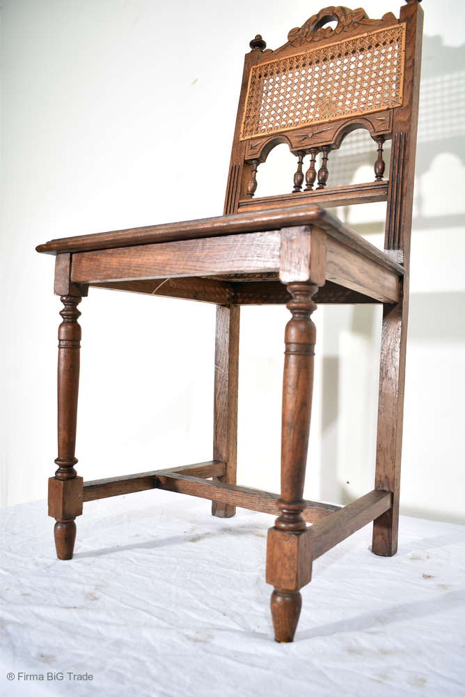 Antiker herrschaftlicher Gründerzeit Stuhl / Henri II Stuhl / Eiche massiv / Sitzgeflecht / Nr. 726