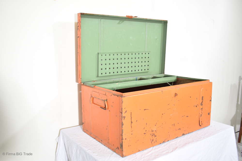 Shabby Chic! Große Blechtruhe Kofferraum Werkzeugkiste Blechkoffer Transportkiste / Griff Einlage