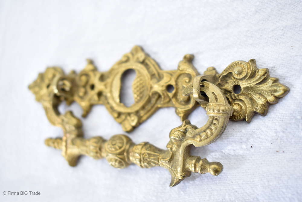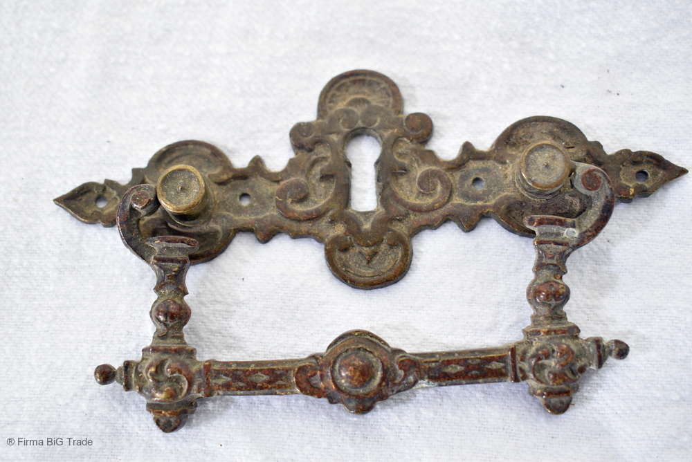 Eleganter antiker Gründerzeit Griff / Beschlag Kommodengriff Schubladengriff Metallguss Verzierungen Nr. 2