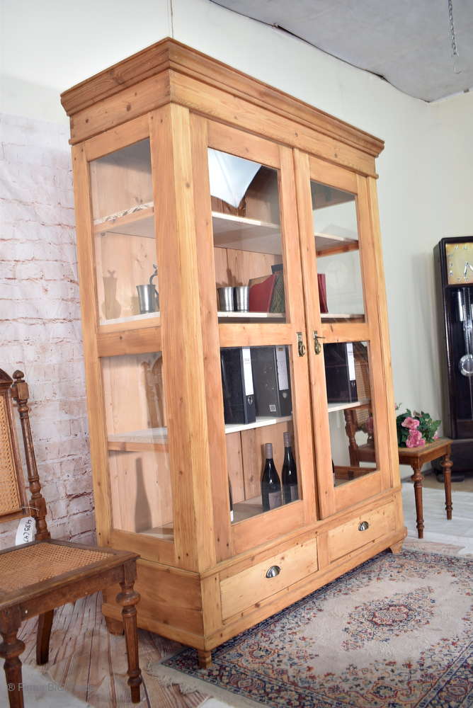 Antiker Jugendstil Schrank Vitrine Keilschrank Glastüren Bücherschrank Regalschrank Weichholz Zerlegbar