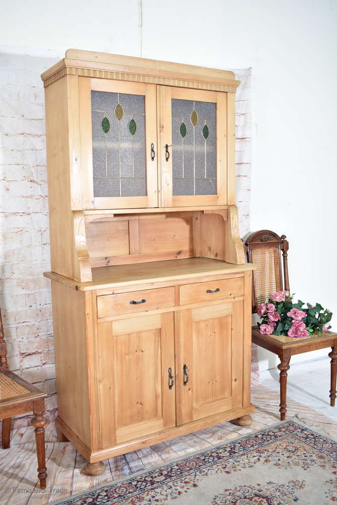 Antiker Jugendstil Landhaus Küchenschrank Kredenz / Bleigals / Weichholz / 2teilig