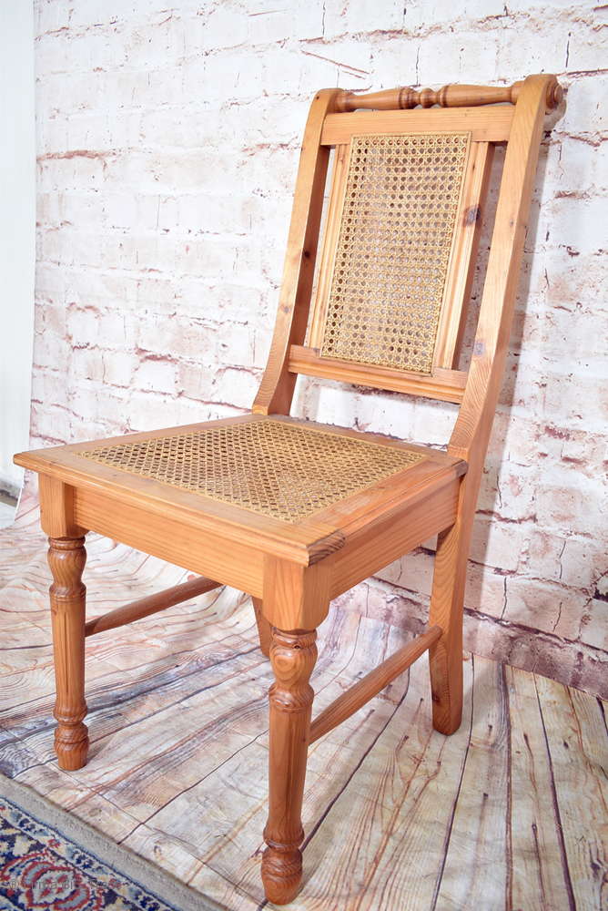 Wunderschöner Walzenstuhl Küchenstuhl Weichholz Massiv Geflecht Gründerzeit Stil 6 Vorhanden / Nr. 730