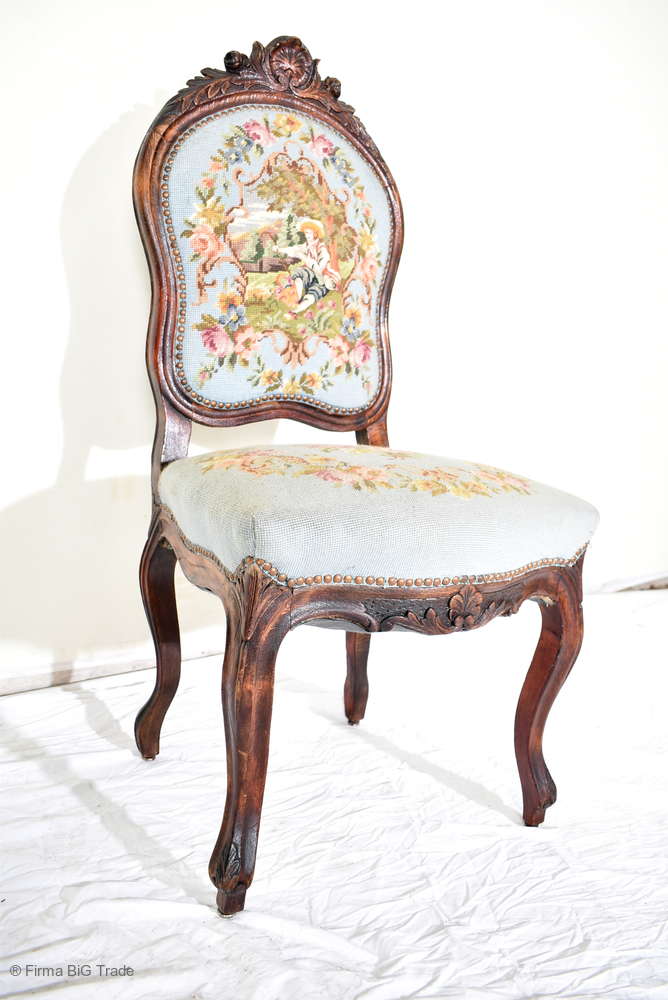 Herschaftlicher antiker Chippendale Damenstuhl Medaillonstuhl Polsterstuhl Goblin Stoff Nr. 734