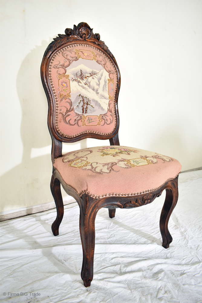 Herschaftlicher antiker Chippendale Damenstuhl Medaillonstuhl Polsterstuhl Goblin Stoff Nr. 733