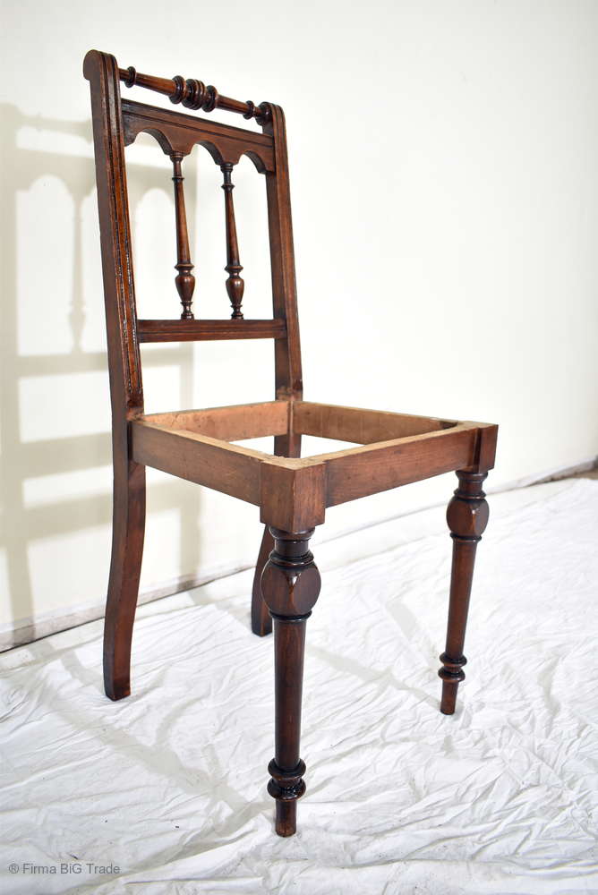 Antiker Gründerzeit Stuhl Gestell / Walzenstuhl / Holzstuhl / Drechselarbeiten / Salonstuhl ohne Sitzfläsche / Nr. 735