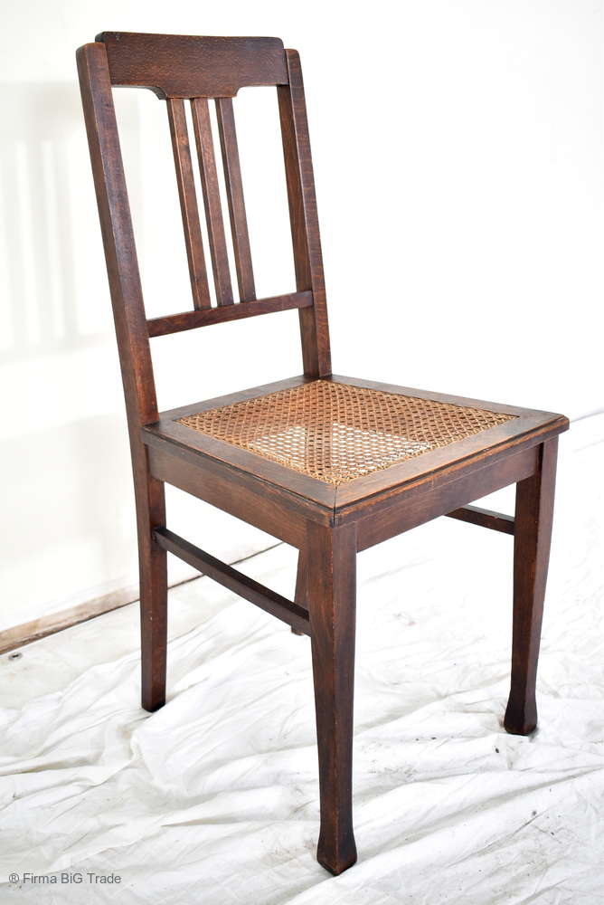 Wunderschöner Antiker Jugendstil Holzstuhl Küchenstuhl Esszimmerstuhl Sitzgeflecht / Eiche Massiv / Nr. 737
