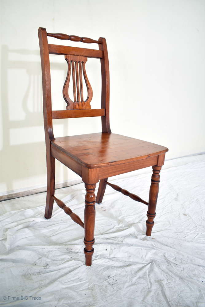 Zauberhaft Walzenstuhl Küchenstuhl Weichholz Massiv Brettstuhl Gründerzeit Stil / Nr. 738