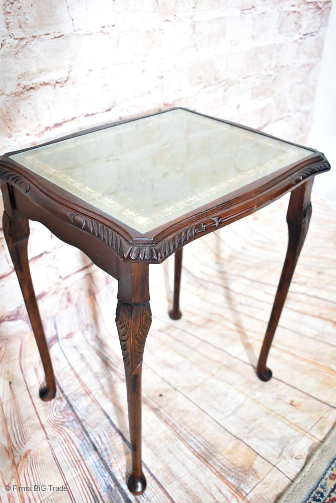 Eleganter engl. Chippendale Beistelltisch Blumentisch Konsole Telefontisch Schnitzereien Lederbezug M
