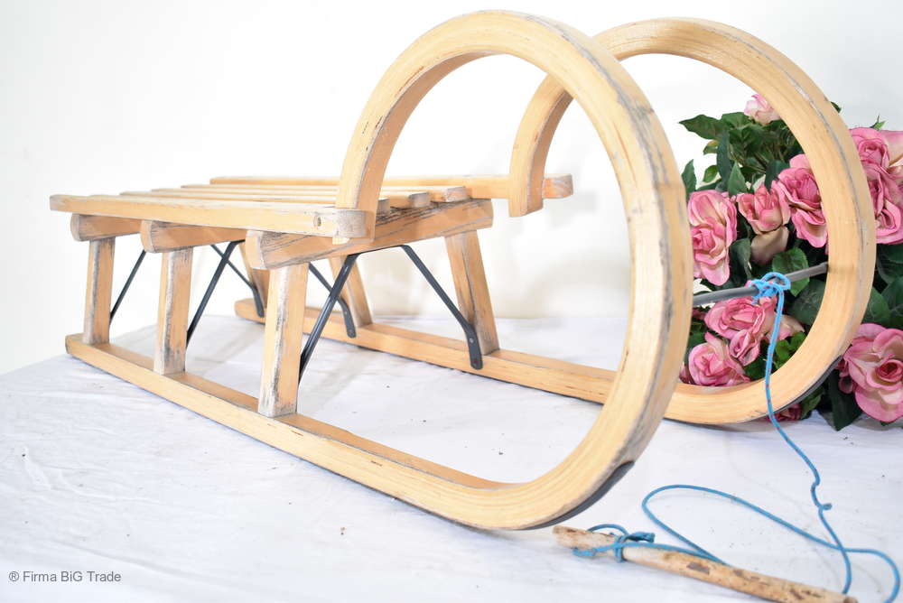 Formschöner großer PILZ-Holzschlitten / Schlitten / Eisenkufen / Formschön / Winter Sport / Nr. 12
